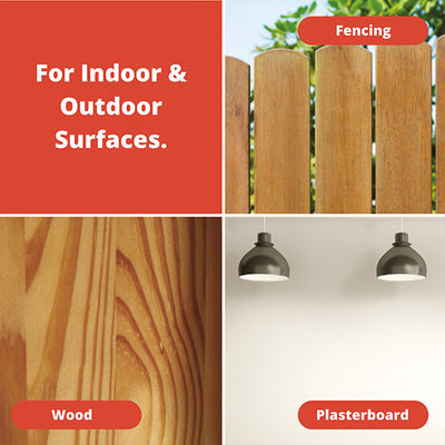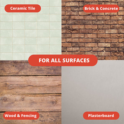 - Can be used on plasterboard, timber, fencing, brick, wood, mortar.