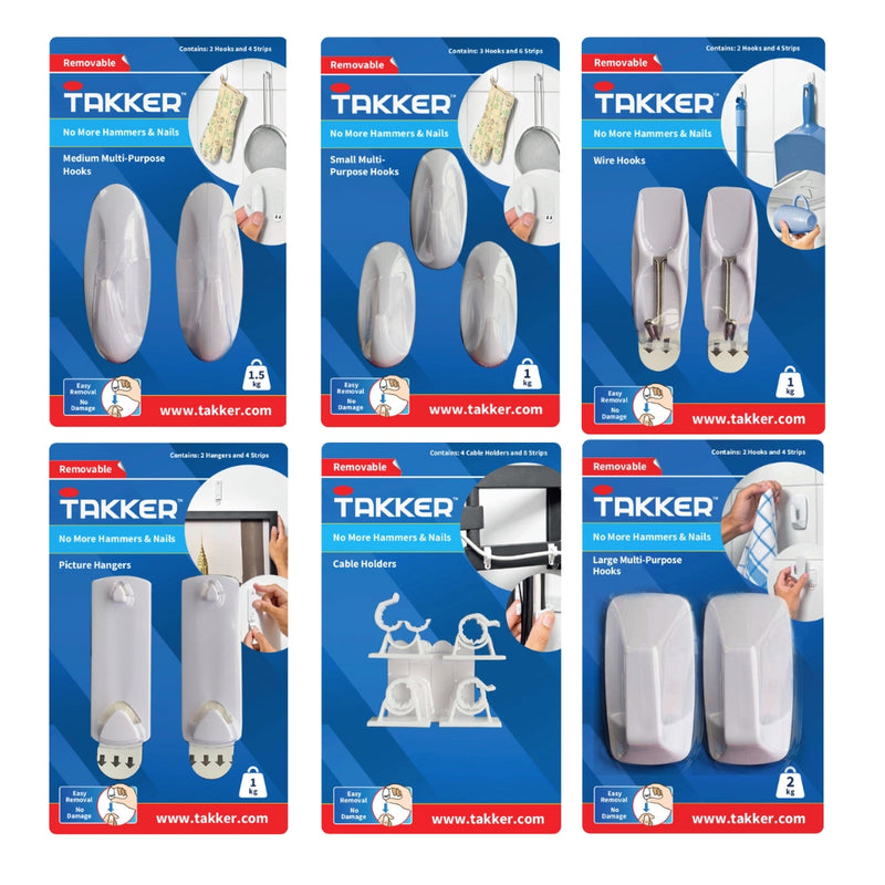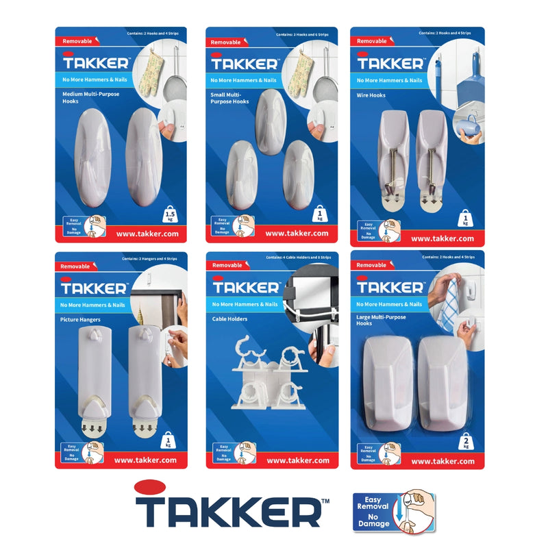 This versatile set gives you everything you need to hang, store, and tidy up in minutes. Whether it’s pictures in the living room, utensils in the kitchen, or cables in the office, Takker hooks and holders make it simple to keep your space clutter-free.